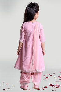 Girls Pastel Pink Patiala Set For Girls With Kurta And Dupatta